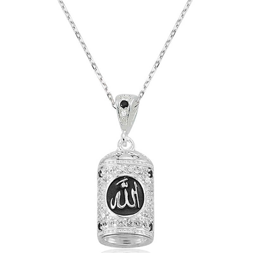 Silver Allah Written Cevşen Prayer Women's NecklaceYou can give your loved ones a meaningful and beautiful gift with this stylish necklace model. Thus, you can make your loved ones happy with a silver cevşen necklace that has a religious and deep meaning. If you want to give a nice gift to the people you care about, this is an opportunity not to be missed. This stylish cevşen necklace model is made of 925 sterling silver. Rhodium plated silver. Rhodium plated silver necklace models preserve their shine for a long time and oxidation is delayed. The stones on it are zircon. The average chain length is 45 cm. All of our products are handmade. Due to silver and precious stones, there may be a ± 10% deviation in the average product weight.Necklace Width: 1.90 cmNecklace Length: 1.00 cmChain Length: 45 cmAverage Weight: 5.50 gr.