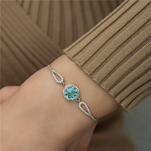 Silver Aquamarine Women's Bracelet You can use the silver aquamarine bracelet models, designed in harmony with the fashion, in your daily life and on special days and nights in a stylish way. You can complete your outfits with innovative products that appeal to the taste of women of all ages. With designs that each appeal to a different style, you can choose our models that suit your sporty, classic and alternative clothing styles. This stylish bracelet is a perfect option for a birthday gift, a Valentine's Day gift or for special occasions. Silver aquamarine stone women's bracelet is made of 925 sterling silver. This bracelet is rhodium plated. Rhodium plated products preserve their shine for a long time and delay oxidation. Like all silver women's bracelet models, the silver aquamarine women's bracelet model is handmade. There may be a ± 10% deviation in the average product weight due to silver and precious stones. Width: 1.00 cm Length: 5.50 cm Average Weight: 4.15 gr. Bracelet Length: 20.00 cm