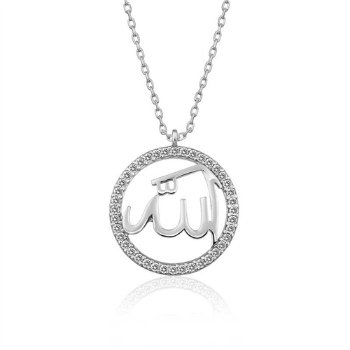 Silver Women's Necklace with Arabic Allah Writing Religion is a system based on belief with a spiritual aspect. Allah is the absolute and only creator of the entire universe and all living and non-living beings. It is a special accessory that believers who hold these thoughts may want to wear and keep with them in their daily lives. This stylish necklace model will be a meaningful way to express spiritual feelings. This necklace with an elegant design will bring peace to you and your loved ones. The women's necklace with Arabic Allah writing on it is made of 925 sterling silver. Rhodium plated silver. Rhodium plated silver women's necklace models preserve their shine for a long time and delay oxidation. The stones on the necklace are zircon. The average silver chain length is 45 cm. As with all silver women's necklace models, the silver Arabic Allah written women's necklace model is also handmade. Due to silver and precious stones, there may be ± 10% deviation in the specified product weight. Width: 2.00 cm Length: 2.00 cm Average Weight: 2.48 gr