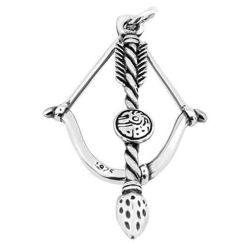 Silver Arrow Bow Men's PendantFor the Turks, who are described as an archer nation, these weapons generally represent power, strength and might, and they also have a special place in the understanding of state and sovereignty. Indeed, among the Turks, the bow is considered a symbol of suzerainty, while the arrow is considered a symbol of subordination or vassalage. This pendant is made of 925 sterling silver. Oxide coating is applied on the silver. Silver pendant models with oxide coating preserve their shine for a long time and oxidation is delayed. This arrow bow pendant, like other silver pendant models, is produced by hand. Due to silver and precious stones, there may be a ± 10% deviation in the specified product weight.Width: 3.00 cmLength: 5.50 cmAverage Weight: 7 gr.