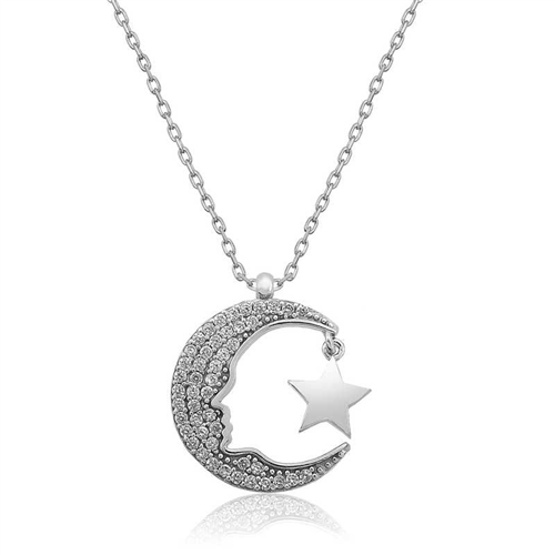 Silver Atatürk Silhouette Crescent and Star Women's Necklace We know that the Turkish flag takes its color from the blood of martyrs and its inspiration from the crescent and star reflected in the bloodbath. Our country's flag and Atatürk silhouette were designed together in this necklace. You can gift this stylish, meaningful necklace to your loved ones and make them happy. This stylish necklace is made of 925 sterling silver, the stones on it are zircon. Rhodium plated on silver. Rhodium plated silver necklace models preserve their shine for a long time. All of our products are handmade. Due to silver and precious stones, there may be ± 10% deviation in the average product weight. Width: 1.70 cm Length: 1.60 cm Avg. Weight: 2.46 g.