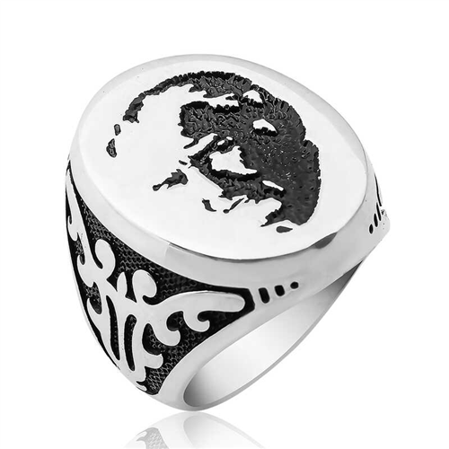 Silver Atatürk Silhouette RingYou are faced with an unmissable ring that will always carry the silhouette of Mustafa Kemal Atatürk, the founder and first president of the Republic of Turkey, with you and share it with your loved ones. The Atatürk silhouette ring model is made of 925 sterling silver. Oxide coating is applied to the silver ring to create an aged appearance. Like all silver ring models, the Silver Atatürk Silhouette Ring model is also handmade. Due to silver and precious stones, there may be ± 10% deviation from the average product weight.Width: 2.00 cm.Length: 2.50 cm.Average Weight: 16.20 gr.
