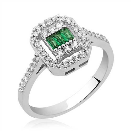 Silver Baget Cutting Lady Ring is made of 925 adjustment silver, this special design baget cut ring you can use easily in everyday life. Rodium coating on silver is made. Lady silver ring models made of rodium coating keep brightness for a long time, oxidizing is delayed. Green and white stones on the ring are zirconia. It is an excellent gift option that you can choose from birthday, dear days and special days. As all of our silver lady ring models, this baget cut lady ring is made entirely with hand labor. Due to silver and precious stones, the average product weight specified can be ± 10% deviation. Width : 1.00 cm. Size : 1.10 cm.Ort. Weight: 2.80 gr.