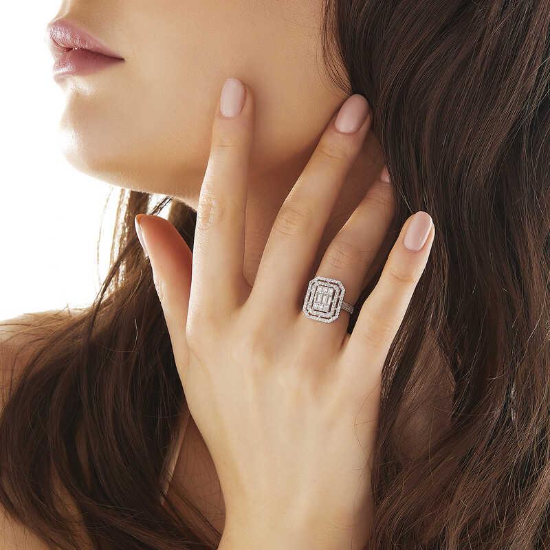 Gümüş Baget Kesim Kadın YüzükGünlük hayatta rahatlıkla kullanabileceğiniz bu özel tasarım baget kesim yüzük 925 ayar gümüşten imal edilmiştir. Gümüş üzerine rodyum kaplama yapılmıştır. Rodyum kaplama yapılan kadın gümüş yüzük modelleri parlaklığını uzun süre muhafaza eder, oksitlenmesi gecikir. Yüzük üzerinde bulunan taşlar zirkondur. Sevdiğinize doğum günü, sevgililer günü ve özel günlerde tercih edebileceğiniz mükemmel bir hediye seçeneğidir. Gümüş kadın yüzük modellerimizin tamamında olduğu gibi bu baget kesim kadın yüzük de tamamen el emeği ile üretilmiştir. Gümüş ve değerli taşlar nedeniyle belirtilen ortalama ürün ağırlığında ± %10 sapma olabilmektedir. En : 2.10 cm.Boy : 2.40 cm.Ort. Ağırlık: 3.60 gr.