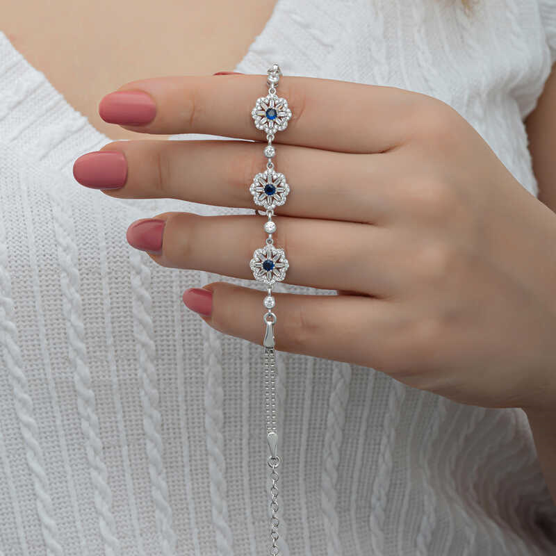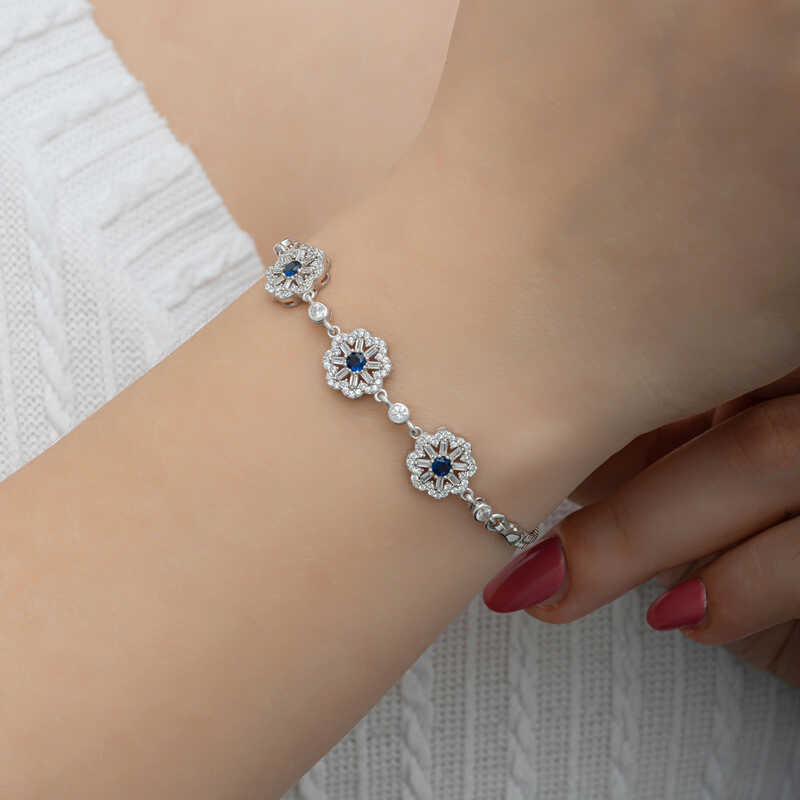 Silver Baguette Flower Patterned Women's BraceletYou can use our fashion-friendly silver baguette bracelet models in an elegant way both in your daily life and on special days and nights. You can complete your outfits with innovative products that appeal to the taste of women of all ages. With designs that each appeal to a different style, you can choose our models that suit your sporty, classic and alternative clothing styles. This stylish bracelet is a perfect option for a birthday gift, a Valentine's Day gift or on special occasions. Silver baguette stone flower patterned women's bracelet is made of 925 sterling silver. This bracelet is rhodium plated. Rhodium plated products preserve their shine for a long time and delay oxidation. Like all silver women's bracelet models, the silver baguette stone women's bracelet model is also hand-crafted. Due to silver and precious stones, there may be a ± 10% deviation in the average product weight.Baguette Diameter: 1.10 cmBracelet Length: 19 cmAverage Weight: 6.50 gr.