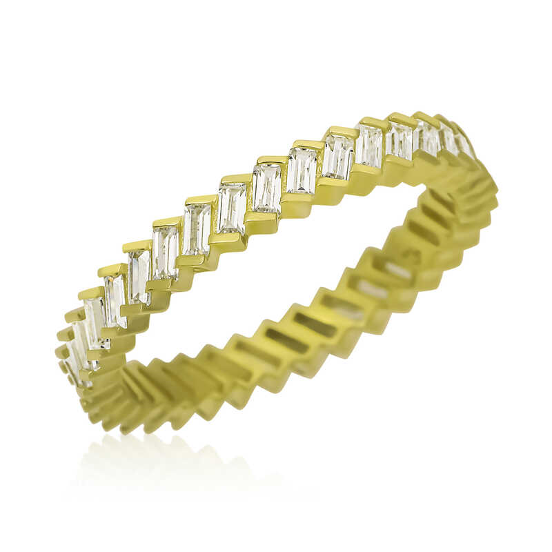 Silver Baget Stone Gold Tamtur Woman Ring is a very fashionable ring model decorated with bright baget stones; it is a very fashionable option that you can choose in special days as gifts to birthday gifts, lovers day gifts or mothers. This fully designed ring is made of 925 adjustment silver. Gold plated on silver is made. Silver rings made of gold plated turn the color into yellow, keep the brightness for a long time. The stones located on the bag. As with all female silver rings, silver baget stone is full female ring model is also manufactured with hand labor. Due to silver and precious stones, the average product weight specified can be ± 10% deviation. Width : 0.30 cm Size : 2.20 cmOrt. Weight : 1.90 gr.