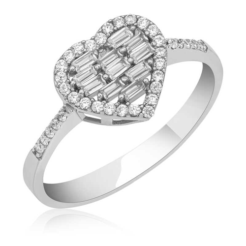 Silver Baguette Stone Heart Women's RingThe heart symbol has always been the symbol of unconditional love and passion. In religious teachings, the power of the heart is limitless. Because the heart is the house of the Creator and our gateway to reality that opens to the universe. This stylish silver heart ring is a perfect option for a birthday gift, Valentine's Day gift or a gift for mothers on special occasions. The silver baguette stone heart women's ring is made of 925 sterling silver. This ring is rhodium plated. Rhodium plated silver women's ring models preserve their shine for a long time. The stones on it are baguettes and zirconias. Like all our silver women's ring models, the silver heart women's ring is handmade. Due to silver and precious stones, there may be a ± 10% deviation in the average product weight. Width: 2.00 cmLength: 2.20 cmAvg. Weight: 2.10 gr.