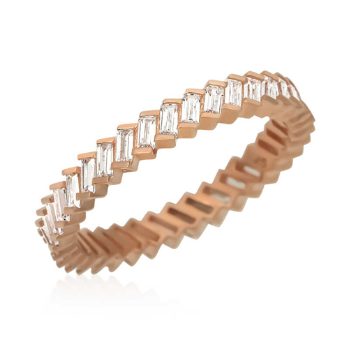 Silver Baguette Stone Rose Eternity RingThis stylish ring model, adorned with sparkling baguette stones, is a very elegant option that you can choose on special occasions as a birthday gift, Valentine's Day gift or a gift for mothers. This eternity ring designed in the shape of an eternity is made of 925 sterling silver. Rose plated on the silver. The stones on it are baguette. As with all women's silver rings, the silver eternity ring model with baguette stones is handmade. Due to silver and precious stones, there may be ± 10% deviation from the average product weight.Width: 0.30 cmLength: 2.20 cmAverage Weight: 1.90 gr.