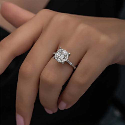 Silver Baguette Stone Women's RingThis stylish ring model adorned with sparkling baguette stones is a very stylish option that you can choose as a birthday gift, Valentine's Day gift or a gift for mothers on special occasions. Baguette stone women's ring is made of 925 sterling silver. Rhodium plated silver. Rhodium-plated silver rings preserve their shine for a long time and oxidation is delayed. The stones on it are baguette and zircon. As with all women's silver rings, the silver baguette stone women's ring model is handmade. Due to silver and precious stones, there may be ± 10% deviation in the average product weight.Width: 2.00 cmLength: 2.60 cmAvg. Weight: 3.30 gr.