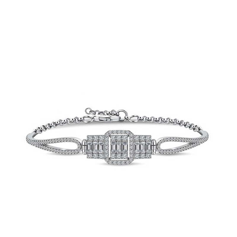 Silver Baguette Women's Bracelet Bracelet models, one of the most important jewels that women can complete their outfits, are reshaped with the uniquely designed silver bracelet with baguette stones. The silver baguette bracelet, with which you can highlight your style in the most sparkling way, allows you to be chic and dazzling. You can own the silver baguette bracelet model that you can use in every moment of your daily life. This model, which stands out as a good alternative to classic baguette bracelet models, manages to attract the appreciation of women of all ages. You can add a different atmosphere to your outfits and style with the silver baguette bracelet model, which you can wear alone or combine with different accessories. This stylish bracelet model, adorned with sparkling baguette and zircon stones, is a very stylish option that you can choose on special occasions as a birthday gift, Valentine's Day gift or a gift for mothers. This bracelet is made of 925 sterling silver. The silver is rhodium-plated. Rhodium-plated silver bracelets preserve their shine for a long time and oxidation is delayed. Like all women's silver bracelets, the silver baguette stone women's bracelet model is also handmade. Due to silver and precious stones, there may be a ± 10% deviation from the average product weight. Width: 1.10 cm Length: 18.50 cm Average Weight: 5.80 gr.