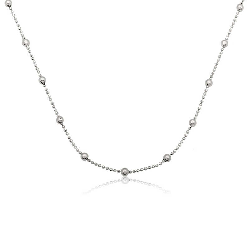 Silver Ball Chain This stylish chain is made of 925 sterling silver. Rhodium plated silver. Rhodium plated women's chains preserve their shine for a long time and oxidation is delayed. It is a perfect gift option for your loved one on birthdays, Valentine's Day and special occasions. Like all of our silver chain models, this silver ball chain is also produced entirely by hand. Due to silver and precious stones, there may be ± 10% deviation in product weight. Width: 0.3 mm Length: 44 cm Average Weight: 3.60 gr.
