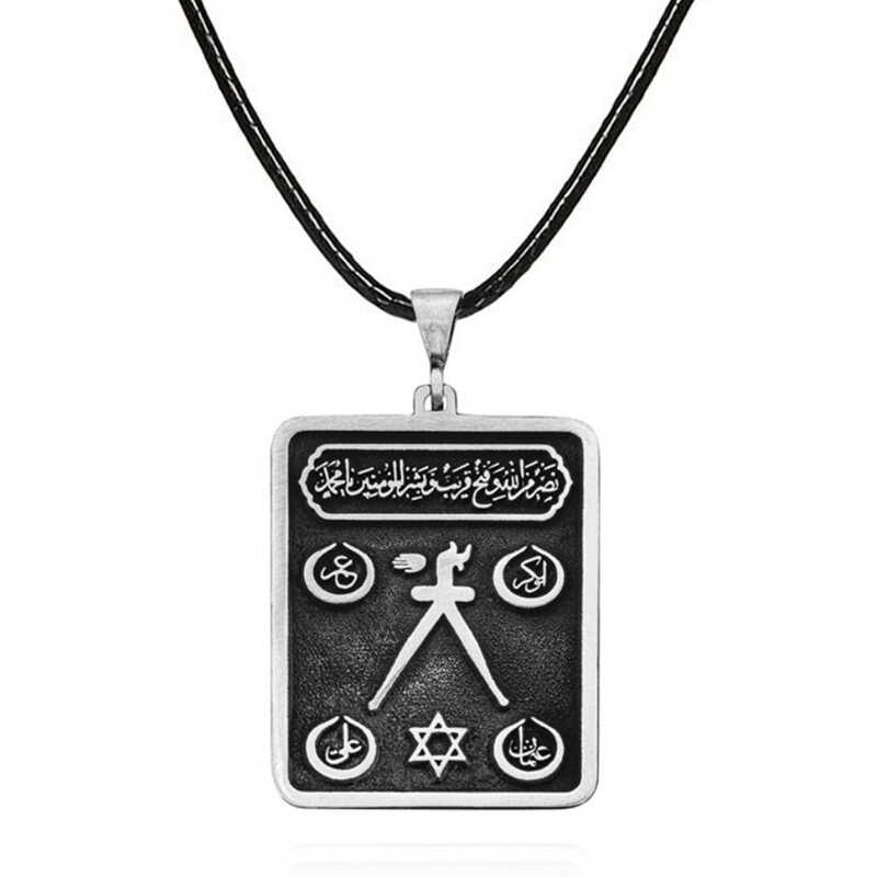 Silver Barbaros Hayrettin Pasha Flag Embroidered Necklace Barbaros flag; In the lower part, there is a zulfikar in the belly and in its four corners, the names of Abu Bakr, Omar, Osman and Ali are written inside the crescent shapes representing Islam on the top right, top left, bottom right and bottom left, respectively. The white hand near the hilt of the sword is the "claw-i Ali aba". This stylish necklace is made of 925 sterling silver. Oxide coating is applied on silver. Necklaces with oxide coating have an authentic appearance. As with all necklaces, the silver Barbaros Hayrettin Pasha flag embroidered necklace is also handmade. It is sent with a 55 cm locked rubber chain. Due to silver and precious stones, there may be ± 10% deviation from the average product weight. Width: 2.20 cm Length: 4.50 cm Avg. Weight: 12.70 gr. Rubber Necklace Length: 55 cm