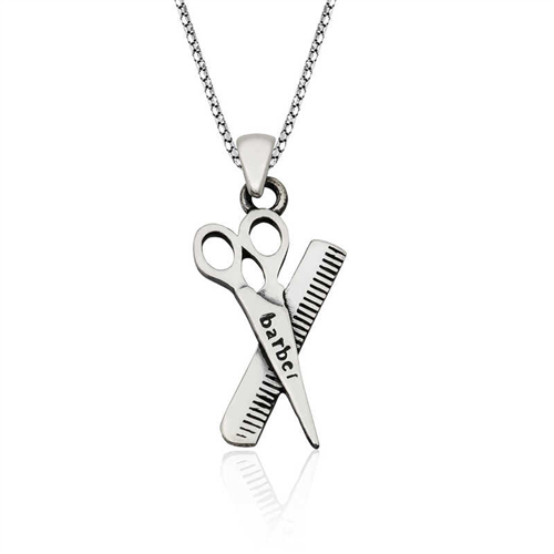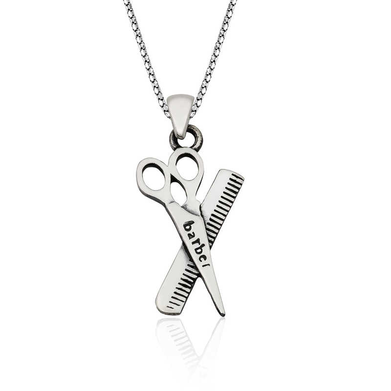 Silver Barber Men's Necklace How about making your loved ones happy with this perfect necklace that stands out with its newest and stylish design? This stylish necklace is a perfect option for a birthday gift, Father's Day or special occasions. The necklace is made of 925 sterling silver. Oxidized coating is applied on the silver. Like other necklaces, the silver barber men's necklace is also handmade. Due to silver and precious stones, there may be ± 10% deviation from the average product weight. Width: 1.50 cm Length: 2.50 cm Average Weight: 9.00 gr. Chain Length: 55 cm