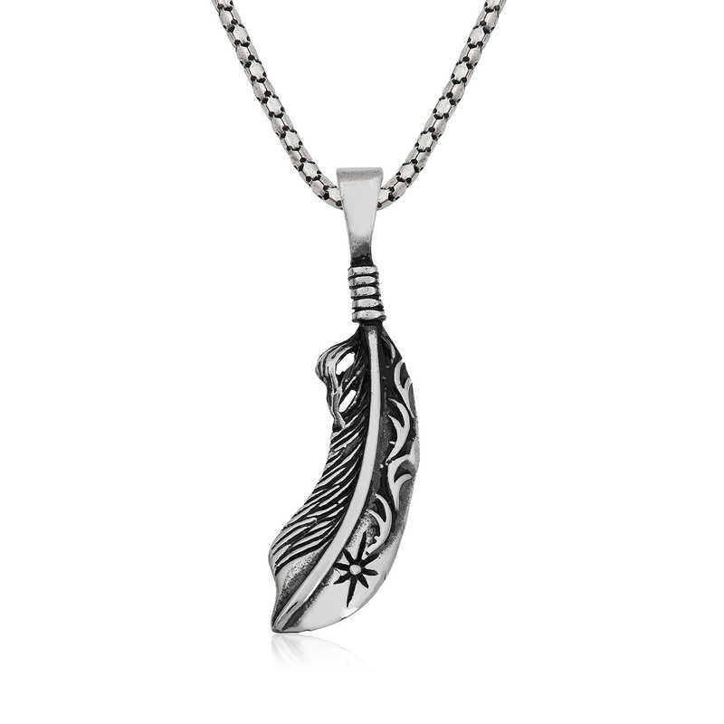 Silver Bird Feather Necklace Bird feathers have an important place especially in ancient Egypt, Maya, Inca, American Indians, and Asian Shamanism. The feather, used for deities, kings, and heroes, shares many meanings with the bird symbol and is generally considered a symbol of truth, righteousness, divine justice, lightness, and ascension since it is the greatest element that helps birds ascend to the sky. This feather necklace model, which you and your loved ones will enjoy wearing, will be one of the best gifts. The bird feather necklace model is made of 925 sterling silver. Oxidized silver. Oxidized silver necklace models preserve their shine for a long time and oxidation is delayed. The average chain length of the silver necklace is 55 cm. Like all necklace models, the silver bird feather necklace model is also handmade. Due to silver and precious stones, there may be a ± 10% deviation in the average product weight. Width: 1.00 cm Length: 4.50 cm Average Weight: 10.00 gr.