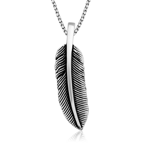 Silver Bird Feather Necklace This stylish necklace model has deep meanings depending on who it is given to. When given to your lover, the innocence of love and affection is emphasized rather than the passion. The feather meaning mostly expresses the purity of the person wearing it or the person to whom it is given. You can gift this meaningful necklace to your loved ones and express how much you care for them. The bird feather necklace model is made of 925 sterling silver. Oxidized silver is coated. Oxidized silver necklace models preserve their shine for a long time and delay tarnishing. The average silver chain length is 55 cm. This stylish necklace model is handmade like other silver necklace models. Due to silver and precious stones, there may be a ± 10% deviation in the average product weight. Width: 1.10 cm Length: 4.40 cm Average Weight: 12.00 gr.