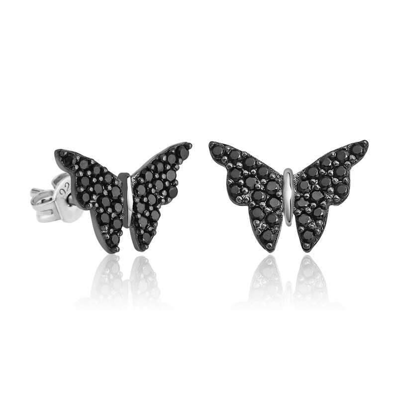 Silver Black Butterfly Earrings Our collection includes different earring models that can adapt to the style of women of all ages, and uniquely designed earring models are waiting for you. The earring designed using the butterfly figure will blow your mind. A model suitable for daily use, the earring is with you at all times. You will love using the dazzling silver butterfly earrings. You will definitely find the right earring for both you and your loved ones in this collection. Silver black butterfly earrings are made of 925 sterling silver. Rhodium plated silver. Rhodium plated silver women's earrings preserve their shine for a long time and oxidation is delayed. The stones on them are zircon. Like all silver women's earrings, this silver black butterfly earring model is also handmade. Due to silver and precious stones, there may be a ± 10% deviation in the average product weight. Width: 2.10 cm Length: 0.80 cm Average Weight: 1.20 gr.