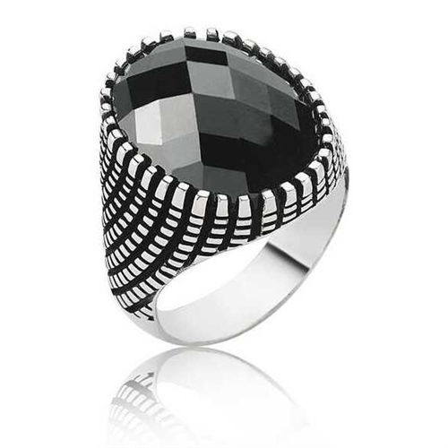 Silver Black Cut Stone Men's RingDesigned for those who do not compromise on classic and elegance, this stylish ring is made of 925 sterling silver. Oxidized silver is coated. The black stone on the ring is zircon. Like all silver men's rings, the silver black cut stone men's ring is entirely handmade. It is a perfect option for a birthday gift, Father's Day or special occasions. Due to silver and precious stones, there may be a ± 10% deviation from the average product weight.Average Weight: 15.00 gr.