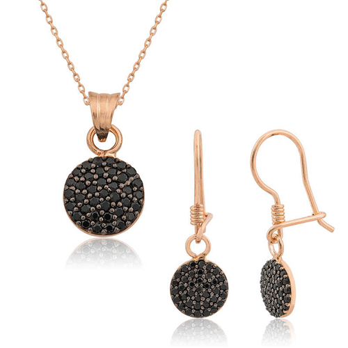Silver Black Round Women's SetThis stylish round women's set is made of 925 sterling silver. Rose plated silver. Rose plated silver women's set models preserve their shine for a long time, oxidation is delayed. The white stones on them are zircon. The average silver chain length that comes with the round mounting set is 45 cm. All of our silver women's set models are handmade. Due to silver and precious stones, there may be ± 10% deviation from the average product weight.Width: 1.00 cm. Length: 1.00 cm. Average Weight: 5.33 gr.