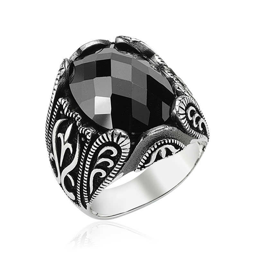 Silver Black Stone Men's RingWhen choosing jewelry for themselves, men choose from thousands of classic and sporty varieties. The highest quality and stylish silver rings are offered to men. Why not a nice silver ring to impress a woman? You can make your loved ones happy by gifting them a silver and black stone men's ring. The black stone men's ring is made of 925 sterling silver. The silver is oxidized. Oxidized silver gives men's rings an authentic look. The black stone on the ring is onyx. Like all silver men's rings, the silver and black stone men's ring is produced entirely by hand. Due to silver and precious stones, there may be a ± 10% deviation from the average product weight.Average Weight: 15.50 gr.