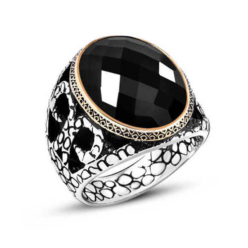 Silver Black Zircon Stone Men's RingThis ring model, made of onyx stone on silver, is a stylish accessory that you can use at any time of the day. You can gift this ring to yourself or your loved ones on your birthday, Father's Day or special occasions. Black zircon stone men's ring model is made of 925 sterling silver. Oxidized silver is coated. Oxidized silver men's ring models preserve their shine for a long time. Like all men's rings, silver black zircon stone men's ring model is also produced by handmade. Due to silver and precious stones, there may be a ± 10% deviation from the stated average product weight.Average Weight: 15.00 gr.