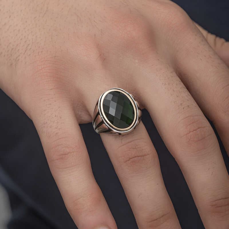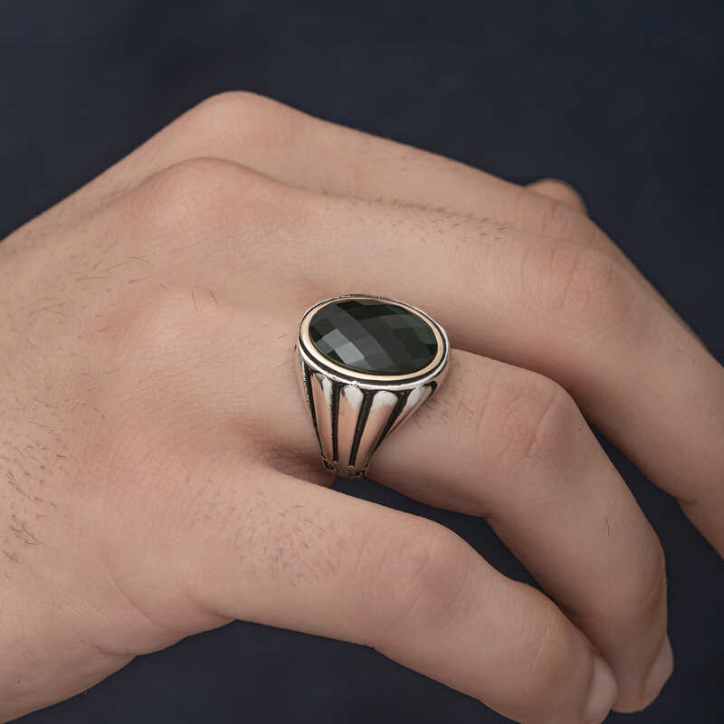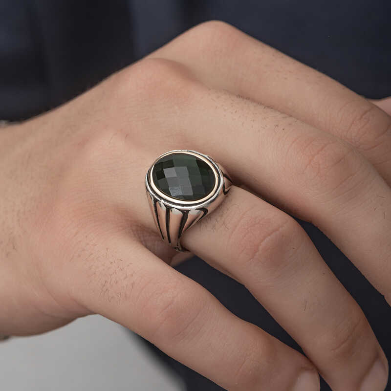 Silver Zircon Black Stone Men's RingThis men's ring model, made of zircon Black Stone stones on silver, is a stylish accessory that you can use at any time of the day. You can gift this ring to yourself or your loved ones on your birthday, Father's Day or special occasions. Black stone ring men's ring model is made of 925 sterling silver. Oxide coating is applied on silver. Oxide coated silver men's ring models preserve their shine for a long time. As with all men's rings, the silver zircon Black stone men's ring model is also handmade. Due to silver and precious stones, there may be ± 10% deviation in the average product weight.Width: 2.10 cmLength: 2.50 cmAvg. Weight: 18.5 gr.