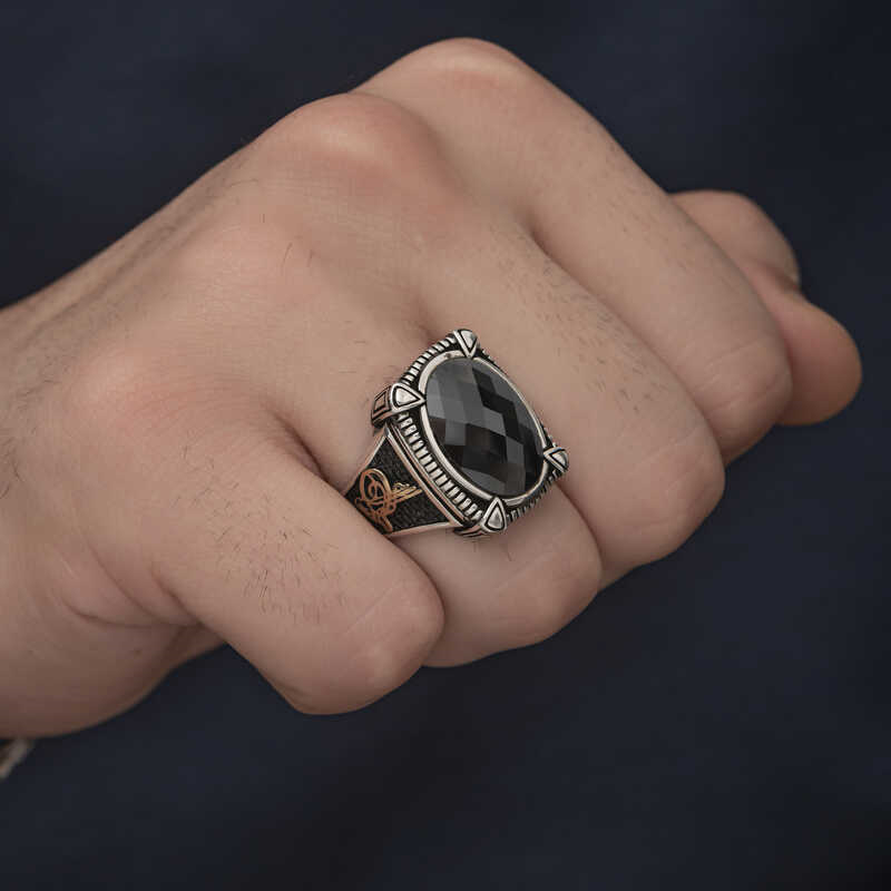 Silver Black Zircon Stone Men's RingThis ring model, made of zircon stones on silver, is a stylish accessory that you can use at any time of the day. You can gift this ring to yourself or your loved ones on your birthday, Father's Day or special occasions. Black zircon stone men's ring model is made of 925 sterling silver. Oxidized silver is coated. Oxidized silver men's ring models preserve their shine for a long time. Like all men's rings, the silver black zircon stone men's ring model is also produced by handmade. Due to silver and precious stones, there may be ± 10% deviation in the average product weight.Ring Width: 2.50 cmRing Length: 2.90 cmAverage Weight: 15.30 gr.