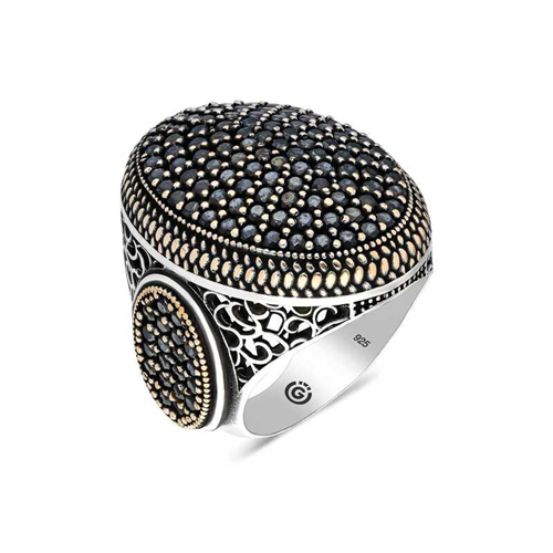 Silver Black Zircon Stone Oval Men's Ring This men's ring model, made of zircon black stone stones on silver, is a stylish accessory that you can use at any time of the day. You can gift this ring to yourself or your loved ones on your birthday, Father's Day or special occasions. The black stone men's ring model is made of 925 sterling silver. Oxide coating is applied on silver. Oxide coated silver men's rings preserve their shine for a long time. As with all men's rings, the silver zircon black stone men's ring model is also handmade. Due to silver and precious stones, there may be ± 10% deviation in the average product weight.Width: 2.30 cmLength: 3.20 cmAvg. Weight: 25 gr.