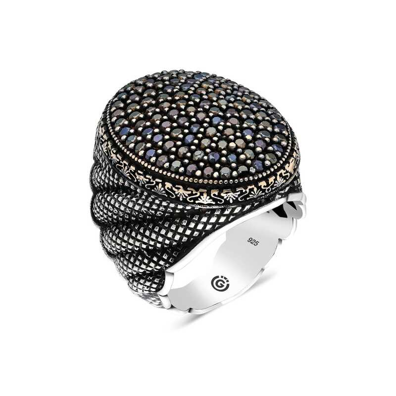 Silver Black Zircon Stone Oval Men's Ring This men's ring model, consisting of zircon black stone stones on silver, is a stylish accessory that you can use at any time of the day. You can gift this ring to yourself or your loved ones on your birthday, Father's Day or special occasions. The black stone men's ring model is made of 925 sterling silver. Oxide coating is applied on silver. Silver men's rings with oxide coating preserve their shine for a long time. As with all men's rings, the silver zircon black stone men's ring model is also handmade. Due to silver and precious stones, there may be ± 10% deviation in the average product weight. Width: 2.30 cm Length: 3.20 cm Avg. Weight: 26.50 gr.