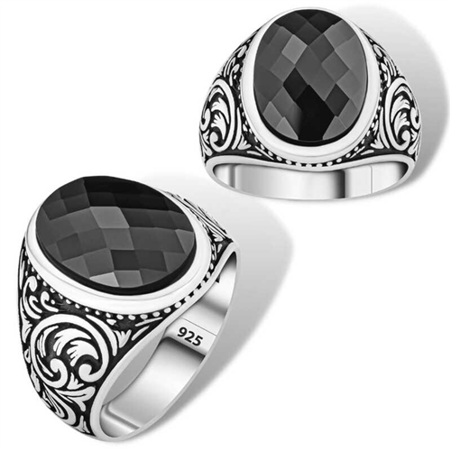 Silver Black Zircon Stone Oval Men's RingThis ring model, made of zircon stones on silver, is a stylish accessory that you can use at any time of the day. You can gift this ring to yourself or your loved ones on your birthday, Father's Day or special occasions. Black zircon stone men's ring model is made of 925 sterling silver. Oxidized silver is coated. Oxidized silver men's ring models preserve their shine for a long time. Like all men's rings, the silver black zircon stone oval men's ring model is also produced by handmade. Due to silver and precious stones, there may be ± 10% deviation in the average product weight.Ring Width: 2.20 cmRing Length: 2.60 cmAverage Weight: 11 gr.