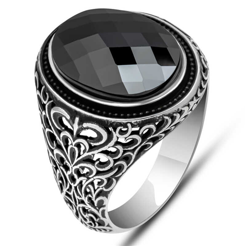 Silver Black Zircon Stone Oval Men's Ring This ring model, made of zircon stones on silver, is a stylish accessory that you can use at any time of the day. You can gift this ring to yourself or your loved ones on your birthday, Father's Day or special occasions. Black zircon stone men's ring model is made of 925 sterling silver. Oxidized silver is coated. Oxidized silver men's ring models preserve their shine for a long time. Like all men's rings, the silver black zircon stone oval men's ring model is also produced by handmade. Due to silver and precious stones, there may be ± 10% deviation in the average product weight. Ring Width: 2.30 cm Ring Length: 2.90 cm Average Weight: 10.20 gr.
