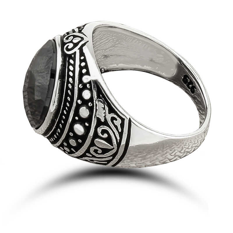 Silver Black Zircon Stone Oval Men's RingThis ring model, made of zircon stones on silver, is a stylish accessory that you can use at any time of the day. You can gift this ring to yourself or your loved ones on your birthday, Father's Day or special occasions. Black zircon stone men's ring model is made of 925 sterling silver. Oxidized silver is coated. Oxidized silver men's ring models preserve their shine for a long time. Like all men's rings, the silver black zircon stone oval men's ring model is also produced by handmade. Due to silver and precious stones, there may be ± 10% deviation in the average product weight.Ring Width: 2.20 cmRing Length: 2.50 cmAverage Weight: 8.40 gr.