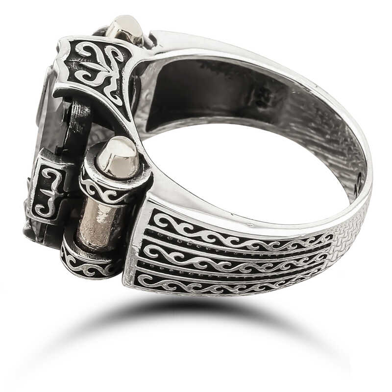 Silver Black Zircon Stone Square Male Ring is a stylish accessory that is composed of zirconia stone on Silver. You can present yourself or your loved ones on the day of birth, fathers day or special days. Black zirconia stone male ring model is made of 925 adjustment silver. oxide coating on silver is made. Oxide plated silver male ring models keep brightness for a long time. As with all male rings, silver black zirconia stone square male ring model is also manufactured with hand labor. Due to silver and precious stones, the average product weight specified can be ± 10% deviation. Ring Width : 2.50 cmFoth Length : 2.70 cmOrt. Weight: 17.70 gr.