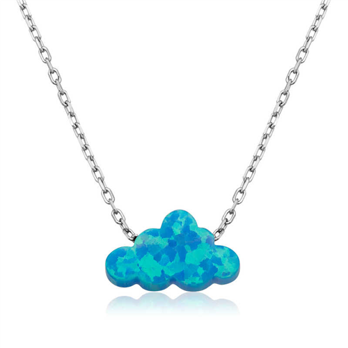 Silver Blue Opal Stone Cloud Women's Necklace Cloud is a structure consisting of visible water droplets, ice crystals, or a mixture of both, collected in a free air mass. Clouds are found above ground level. Billions of droplets and crystals together form the structure called a cloud. Rhodium plating is made on silver. Rhodium-plated silver products preserve their shine for a long time and oxidation is delayed. Silver blue cloud women's necklace is made of opal stone. Like all silver necklaces, silver opal stone cloud women's necklace is produced entirely by hand. The product will be sent in its special box... Due to silver and precious stones, there may be ± 10% deviation in product weight. Width: 1.00 cm Height: 0.60 cm Avg. Weight: 1.25 gr.