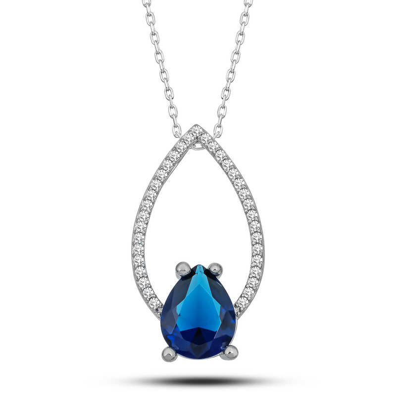 Silver Blue Stone Drop Women's Necklace You will love using this necklace, which reminds me of stars with its sparkling stones, in everyday life, special occasions and nights. This timeless silver necklace with stones that will never go out of style is waiting for you, appealing to all women who want to create a stylish look. Silver blue stone drop women's necklace is a perfect option for a birthday gift, a Valentine's Day gift or a gift for mothers on special occasions. Blue stone drop women's necklace is made of 925 sterling silver. Rhodium plated silver. Rhodium plated women's necklaces preserve their shine for a long time and delay oxidation. The stones on it are zircon. The average chain length is 45 cm. Like all women's necklaces, the silver blue stone drop women's necklace is also handmade. Due to silver and precious stones, there may be a ± 10% deviation in the average product weight. Width: 1.40 cm Length: 2.60 cm Average Weight: 3.90 gr.