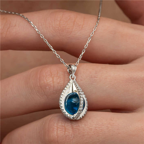 Silver Blue Zircon Stone Sphere Women's Necklace The symbol of elegance and style, the Blue Zircon Stone Sphere Women's Necklace, draws attention with its special design. The eye-catching blue zircon stone is one of the most distinctive and impressive elements of the design. The blue zircon has a deep and impressive blue color. This stylish necklace, which has a sphere form with a blue zircon stone in its center, is a perfect option for a birthday gift, Valentine's Day gift or on special occasions. The silver is rhodium plated. Rhodium-plated necklaces preserve their shine for a long time and oxidation is delayed. There may be a ± 10% deviation in the average product weight due to silver and precious stones. Width: 1.00 cm Length: 1.50 cm Average Weight: 4.00 gr. Chain Length: 45.00 cm