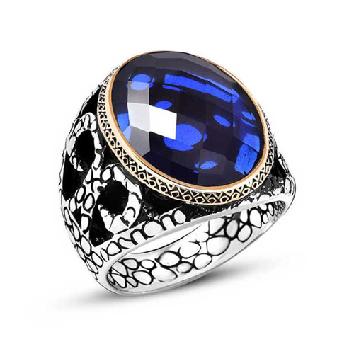 Silver Blue Zircon Stone Men's RingThis ring, made of blue zircon stone on silver, is an accessory with countless health benefits that you can use at any time of the day. You can gift this ring to yourself or your loved ones on your birthday, Father's Day or special occasions. The blue zircon stone men's ring model is made of 925 sterling silver. Oxidized silver is coated. Oxidized silver men's ring models preserve their shine for a long time. Like all men's rings, the silver blue zircon stone men's ring model is also produced by hand. Due to silver and precious stones, there may be a ± 10% deviation from the stated average product weight.Average Weight: 15.00 gr.