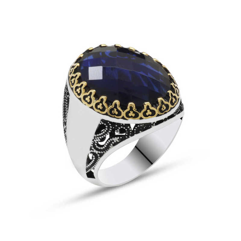 Silver Blue Zircon Stone Men's RingThis ring, made of blue zircon stone on silver, is an accessory with countless health benefits that you can use at any time of the day. You can gift this ring to yourself or your loved ones on your birthday, Father's Day or special occasions. The blue zircon stone men's ring model is made of 925 sterling silver. Oxidized silver is coated. Oxidized silver men's ring models preserve their shine for a long time. Like all men's rings, the silver blue zircon stone men's ring model is also produced by handmade. Due to silver and precious stones, there may be a ± 10% deviation from the stated average product weight.Average Weight: 14.00 gr.