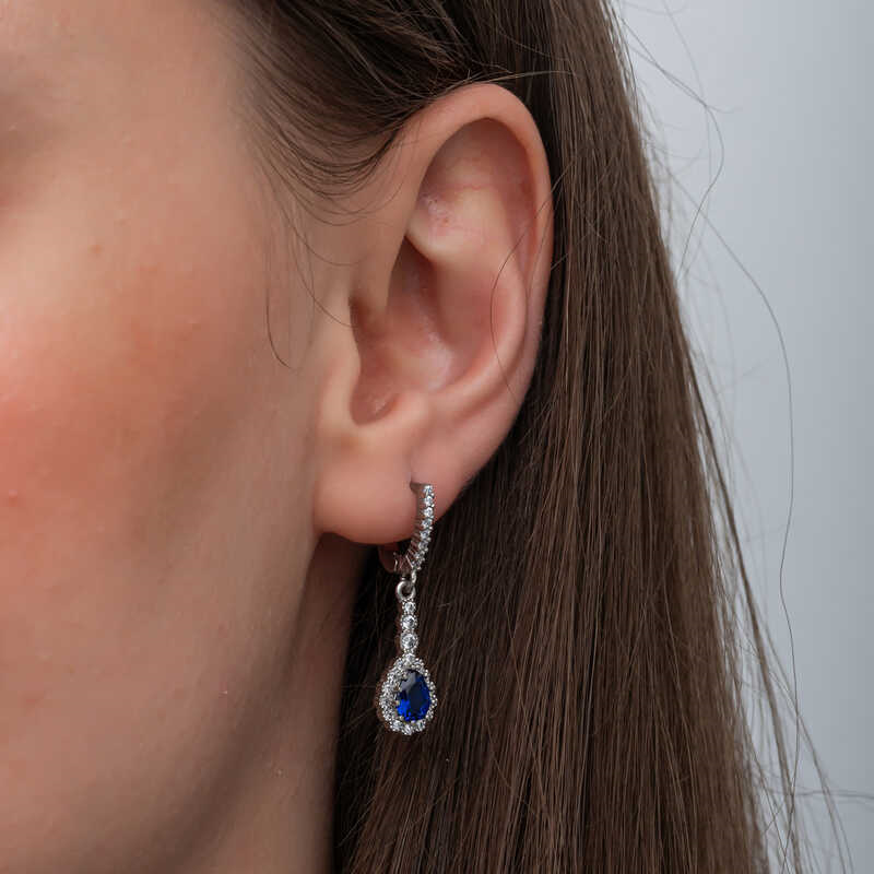 Silver Blue Drop Zircon Stone Women's EarringsThis women's earring model, made of zircon stone stones on silver, is a stylish accessory that you can use at any time of the day. You can gift this earring to yourself or your loved ones on your birthday, Mother's Day or special occasions. The zircon stone drop women's earring model is made of 925 sterling silver. Rhodium plated on silver. Rhodium plated silver women's earring models preserve their shine for a long time. As with all women's earrings, the silver zircon drop stone women's earring model is produced by hand. Due to silver and precious stones, there may be ± 10% deviation in the average product weight.Width: 0.90 cm Length: 3.70 cm Avg. Weight: 4.60 gr.