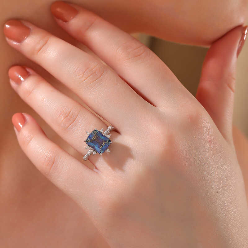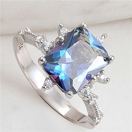 Silver Blue Zircon Stone Women's RingIt will be an ideal choice for those who want to get a stylish and simple look. The zircon stone women's ring is a model that you can buy for yourself and your loved ones with its simple and stylish design. This zircon stone women's ring is made of 925 sterling silver. Rhodium plated on silver. Rhodium plated models preserve their shine for a long time and oxidation is delayed. The stones on the multi-stone women's ring are zircon. The zircon stone women's ring is produced by handmade. Due to silver and precious stones, there may be ± 10% deviation in the weight of the product.Width: 2.10 cmLength: 2.60 cmAvg. Weight: 3.80 gr.