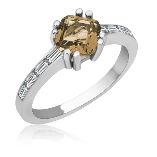Silver Brown Baguette Solitaire Women's RingPrepared for those who want to express their love with the magical light of a solitaire stone. One love, one stone ... This specially designed baguette stone ring is made of 925 sterling silver. Rhodium plated on silver. Rhodium plated women's silver ring models preserve their shine for a long time and oxidation is delayed. The stone on the ring is baguette. It is a perfect gift option that you can give to your loved one on birthdays, Valentine's Day and special occasions. As with all of our silver women's ring models, this solitaire women's ring is also entirely handmade. Due to silver and precious stones, there may be ± 10% deviation in the average product weight.Width: 2.10 cmLength: 2.60 cmAvg. Weight: 3.30 gr.