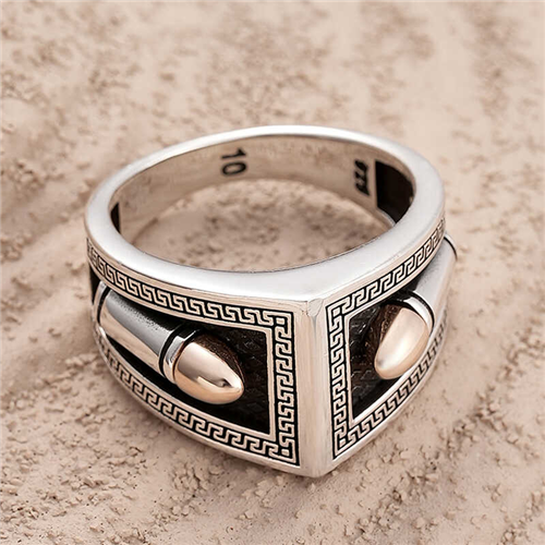 Silver Bullet Motif Men's RingBullet rings have many meanings. Gifting a bullet ring to your loved one means "they will be mine until death." You can buy this stylish and meaningful ring for yourself or as a gift to your loved ones on special occasions. This ring is made of 925 sterling silver. Oxidized silver is coated. Oxidized silver ring models preserve their shine for a long time and oxidation is delayed. Like all silver rings, the silver bullet motif men's ring model is produced entirely by hand. Due to silver and precious stones, there may be a ± 10% deviation from the average product weight.Ring Width: 2.40 cmRing Length: 2.70 cmAverage Weight: 12 gr