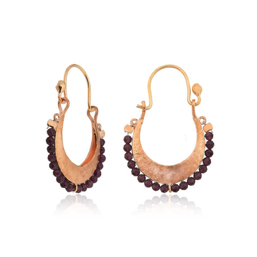 Silver Burgundy Stone Bohemian Earrings It is a nice accessory that you can enjoy using with its unique design. Bohemian women's earrings adorned with burgundy stones are a piece of jewelry that will win the appreciation of vintage style lovers. It is a dazzling product that you can enjoy using at any moment of the day. Silver bohemian earrings are made of 925 sterling silver. These earrings are plated with rose gold. Rose gold-plated products preserve their shine for a long time and turn the silver into copper color. As with all silver women's earring models, the silver burgundy stone bohemian women's earring model is produced by hand. There may be ± 10% deviation in the average product weight due to silver and precious stones. All of our products are handmade. Width: 2.30 cm Length: 3.50 cm Average Weight: 6.00 gr.