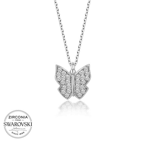 Swarovski Stone Butterfly Silver Women's Necklace Swarovski stone takes its name from the Swarovski company, founded by Daniel Swarovski (1862 - 1956) at the end of the 19th century. Swarovski stones are not real diamonds. They are stones that are achieved by applying special cutting techniques to crystal stones and giving them a smooth appearance. Swarovski is a global brand used especially in jewelry. Although it is not a substitute for diamonds, Swarovski, which creates a distinct beauty in jewelry, is a man-made crystal stone, while diamonds are a natural stone and reflect a natural sparkle. It is a necklace that you will enjoy using in daily life and that you can create various combinations to reflect your style with its different design. A Swarovski crystal-studded silver butterfly necklace will be a wonderful gift for both you and your loved ones. The necklace is made of 925 sterling silver. The silver is rhodium-plated. Rhodium-plated silver necklaces retain their shine for a long time and slow oxidation. The stone on the necklace is glass. Like all silver necklaces, this Swarovski crystal-studded silver butterfly necklace is handmade. Due to silver and precious stones, there may be ± 10% deviation from the average product weight. Width: 1.00 cm Height: 1.10 cm Average Weight: 2.20 gr. Chain Length: 50 cm