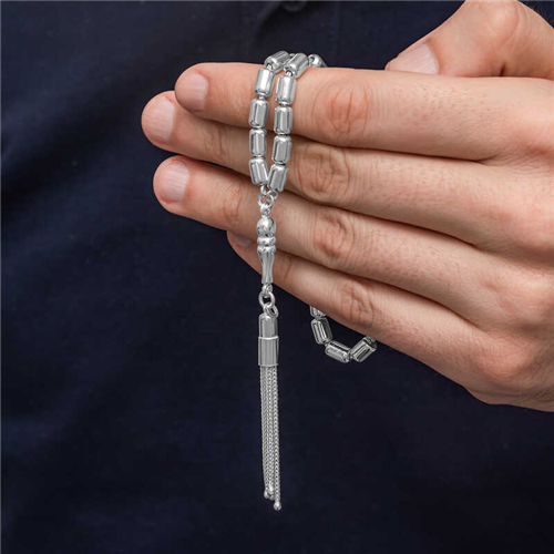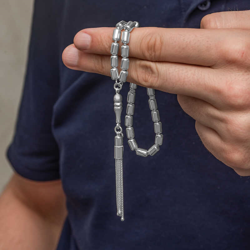 Silver Capsule Cut Men's Prayer Beads Bringing elegance and simplicity together, the Silver Capsule Cut Men's Prayer Beads offers modern and classic styles together. While it adds elegance to your style with its shiny surface and eye-catching capsule-cut beads, it is also ideal for daily use by providing a comfortable grip. Appealing to both classic and modern styles with its silver color, this prayer beads will be an elegant detail that completes your combinations. You can use the silver prayer beads with pleasure and choose it as a gift for birthdays, Valentine's Day, Father's Day or on special occasions. All of our products are handmade. Due to silver and precious stones, there may be a ± 10% deviation in the average product weight. Width: 0.40 cm Length: 0.70 cm Prayer Length: 26.00 cm Average Weight: 19.20 Gr