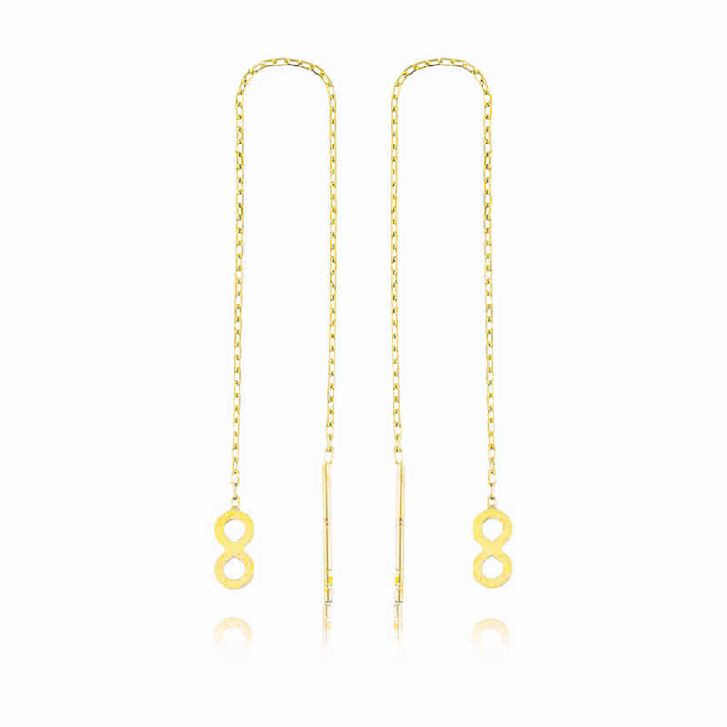 Silver Chain Infinity Earrings One of the most beautiful and meaningful ways to express your eternal love to your loved one is the infinity earring. With its stylish design, you can express your eternal love to your loved one and send the message that you will be together forever. You can choose this simple and elegant earring, which is loved by all times, as a birthday gift, Valentine's Day gift or a gift for mothers on special occasions. Women's infinity earrings with chain are made of 925 sterling silver. Gold-plated silver earrings are made. Gold-plated silver earrings preserve their shine for a long time and delay oxidation. Like all silver women's earrings, these silver chain infinity earrings for women are entirely handmade. Due to silver and precious stones, there may be a ± 10% deviation in the average product weight. Earring Width: 0.40 cm Earring Length: 0.80 cm Average Weight: 0.80 gr