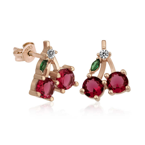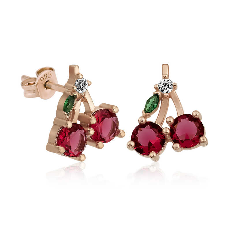 Silver Cherry Figured Fruit Studded EarringsThe most preferred accessories of the summer season will be among your favorites with their colorful fruit concept. Fruit concept accessories will be the most talked about earrings of the summer and will add color to your daily style. These stylish cherry figure earrings are a perfect option for a birthday gift, Valentine's Day gift or on special occasions. Silver zircon stone cherry figure fruit studded earrings are made of 925 sterling silver. This earring is rose plated. Rose plated products preserve their shine for a long time and delay oxidation. Like all silver women's earring models, the silver cherry figured fruit earring model is produced by hand. Due to silver and precious stones, there may be a ± 10% deviation in the average product weight.Width: 1.00 cmLength: 1.20 cmAverage Weight: 2.25 gr.