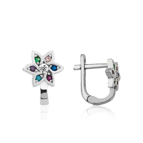 Silver Colored Flower Women's EarringsThis stylish and modern earring adorned with sparkling zircon stones is adorned with eye-catching flowers... This different design is a very stylish option that you can choose on special occasions as a birthday gift, Valentine's Day gift or a gift for mothers. The earring is made of 925 sterling silver. Rhodium plated silver. Rhodium-plated silver earrings preserve their shine for a long time and oxidation is delayed. As with all women's silver earrings, the silver colored flower women's earrings are handmade. The stones on them are zircon. Due to silver and precious stones, there may be ± 10% deviation in the specified product weight.Width: 0.80 cmLength: 1.00 cmAvg. Weight: 2.44 gr.