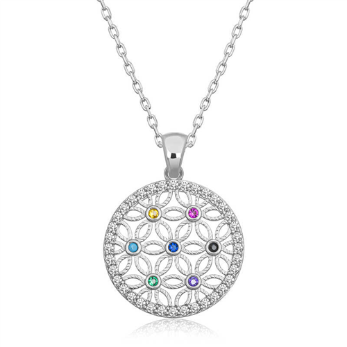Silver-Colored Stone Flower of Life Women's NecklaceThe flower of life is the only geometric shape that contains all the secrets and knowledge of creation. In reality, it is not a circle but a sphere. It should be thought of as three-dimensional or even multi-dimensional. The flower of life contains Plato's 5 solids and Metatron's cube. These shapes construct all of existence. Considered one of the most powerful and special symbols in ancient teachings, the flower of life is the essence of the power of eternity, perfection, and excellence. You can delight your loved ones or yourself with this special necklace. The Flower of Life women's necklace model is made of 925 sterling silver. Rhodium plated silver. Rhodium plated silver women's necklace models preserve their shine for a long time and oxidation is delayed. The stones on the necklace are zircon. The average silver chain length is 45 cm. This flower of life women's necklace model is handmade like other silver women's necklace models. Due to silver and precious stones, there may be a ± 10% deviation in the average product weight.Width: 1.80 cmLength: 2.50 cmAverage Weight: 3.50 gr.