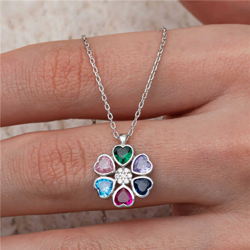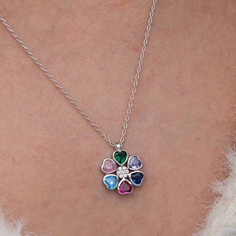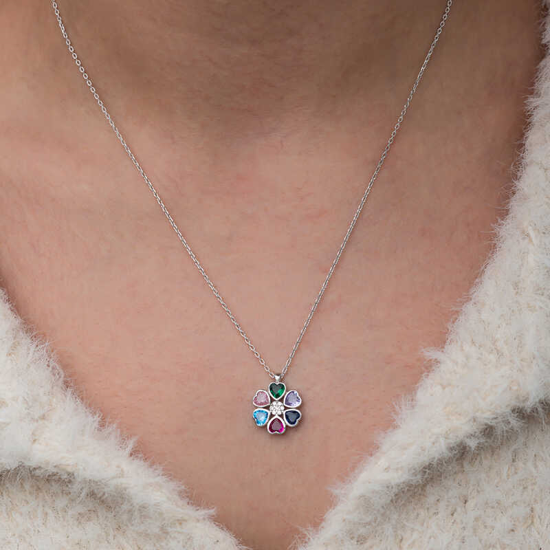 Silver Colored Heart Flower Women's Necklace A colorful heart flower necklace is often considered a symbol of love, friendship and positive emotions. While the variety of colors can represent different aspects of life and an emotional color palette, the heart figure also symbolizes love and commitment. This stylish necklace is a perfect option for a birthday gift, Valentine's Day or special occasions. The necklace is made of 925 sterling silver. Rhodium plated silver. Due to silver and precious stones, there may be ± 10% deviation from the average product weight. Width: 1.20 cm Length: 1.50 cm Avg. Weight: 3.10 gr. Chain Length: 45.00 cm