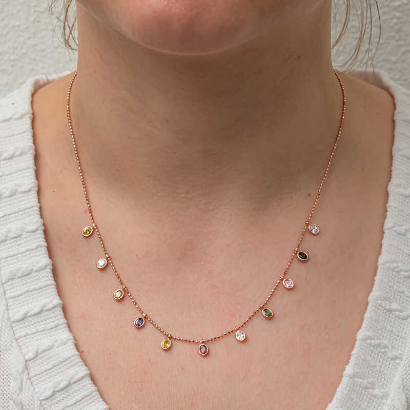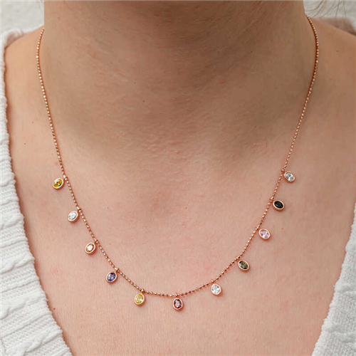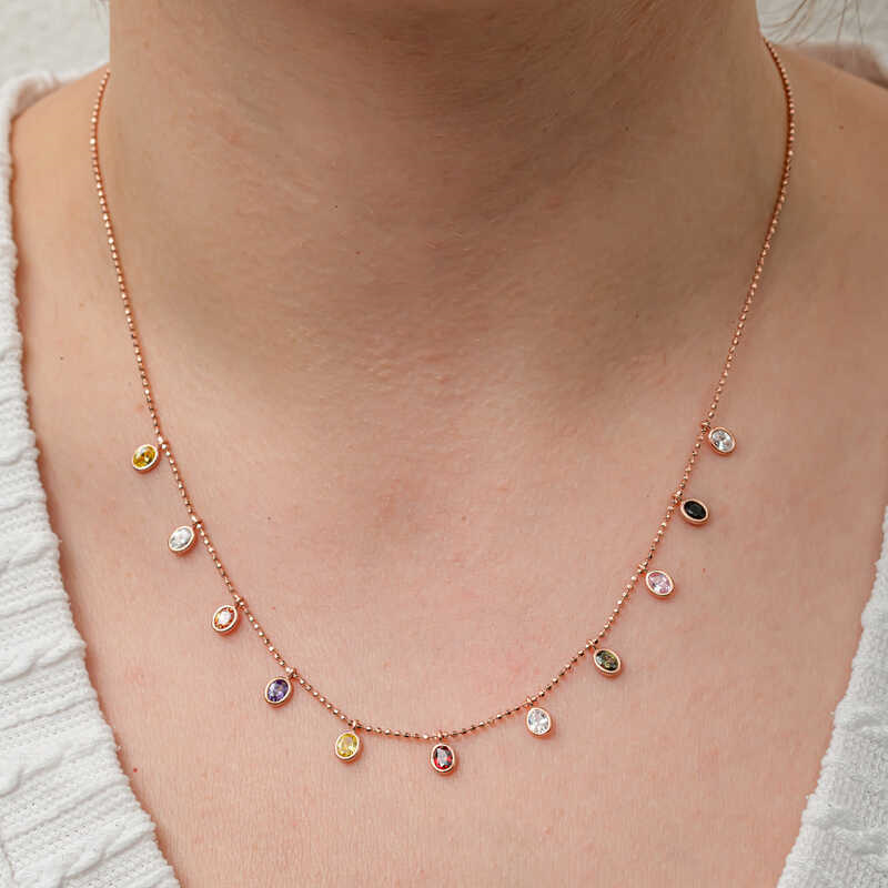 Silver Colored Oval Stone Luck Women's Necklace Specially designed colorful necklaces that are the reflection of our colorful imagination, which is the most fun side of our heart and soul... This stylish necklace is a perfect option to choose on special occasions as a birthday gift, Valentine's Day gift or a gift for mothers. Colorful women's necklace is made of 925 sterling silver. Rose plated silver. Rose plated women's luck necklaces preserve their shine for a long time and oxidation is delayed. As with all silver necklaces, the silver colored women's necklace model is also handmade. Due to silver and precious stones, there may be ± 10% deviation in the average product weight. Width: 0.30 cm Length: 0.80 cm Avg. Weight: 3.40 gr. Chain Length: 45.00 cm
